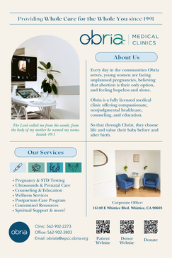 We'd love to partner with your church or group! We would be honored to speak on behalf of Obria LA, share powerful testimonies, and equip your community to take meaningful action for life.
